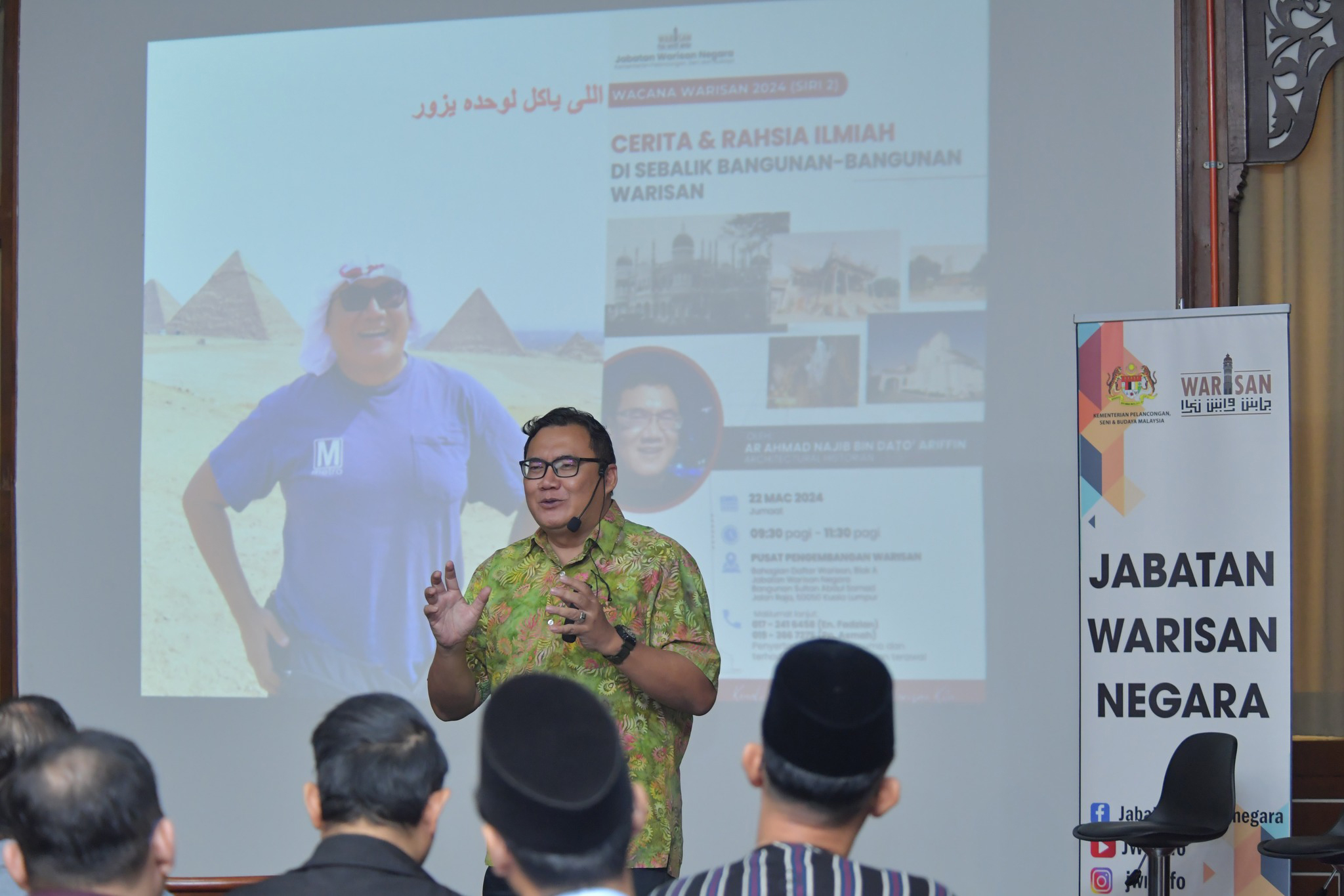 Program Wacana Warisan 2024 Siri 2 - Cerita & Rahsia ilmiah di sebalik bangunan-bangunan warisan oleh Encik Ar.Ahmad Najib Ariffin. Pada 22 Mac 2024 (Jumaat) di Pusat Pengembangan Warisan, Jabatan Warisan Negara.